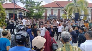 Aksi Damai Aliansi Masyarakat Rambah Tengah Hulu Di PN Pasir Pengaraian Berlangsung Kondusif