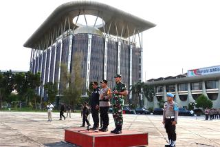 Kapolresta Pekanbaru Kombes Pol Jeki Rahmat Mustika S.I.K memimpin Apel Serpas personil Pengamanan TPS Pemilu 2024