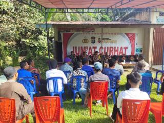 Polresta Pekanbaru bersama masyarakat kelurahan tebing tinggi Okura, Kecamatan Rumbai Timur, kota Pekanbaru, kegiatan Jumat Curhat.
