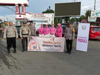 Personil Polsek Kuantan Tengah dan Bhayangkari Bagikan Takjil di Taman Jalur Kecamatan Kuantan Tengah