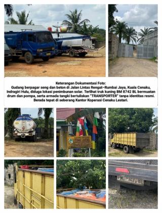 Gudang Penimbunan Solar di Kuala Cenaku Digerebek Media: Ditemukan 2 Tangki 15 KL, 1 Tangki 5 KL, Mobil L300, Serta Tandon Air Orange-Biru