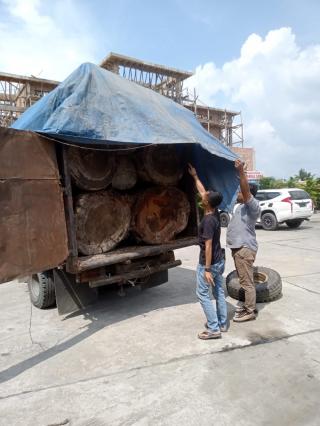 Polsek Kampar Kiri Tangkap Mobil Bermuatan Kayu Ilegalloging di Desa Lipat Kain