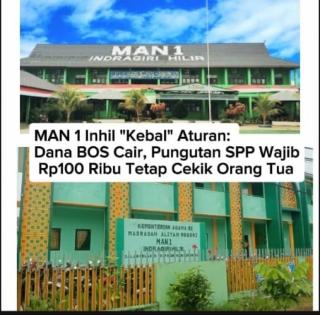 • MAN 1 Inhil Kebal Aturan: Dana BOS Cair, Pungutan SPP Wajib Rp100 Ribu Tetap Cekik Orang Tua