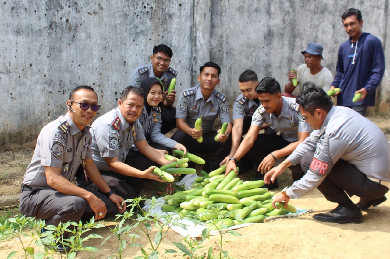 Mantap Rutan kelas IIB Rengat Panen Sayur Mentimun Bersama Warga Binaan