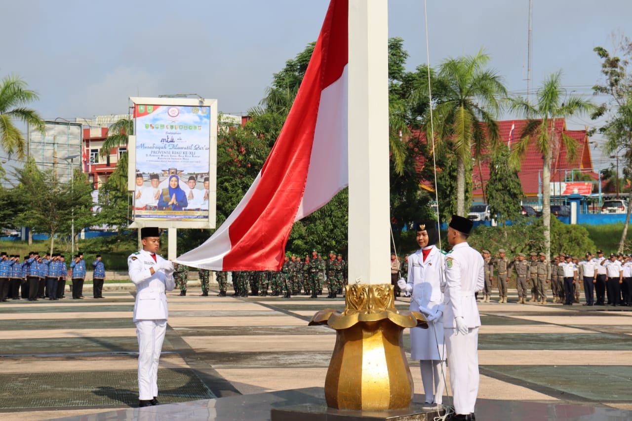 Wakil Bupati Inhu Drs. Junaidi Rachmat, M. Si bertindak selaku inspektur upacara dan diikuti Unsur Forum Koordinasi Pimpinan Daerah (Forkopimda), seluruh ASN dan Non ASN di Lingkungan Pemkab Inhu serta anggota TNI dan POLRI .