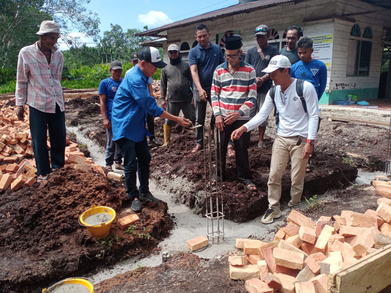Bengkalis - Anggota DPRD Kabupaten Bengkalis dr Morison Bationg Sihite dari partai Demokrat dapil Bengkalis Bantan, melakukan peletakan batu pertama untuk pembangunan Masjid Sabilussalam Dusun Anak Kembung RT 15/RW 04 Desa Penebal Kecamatan Bengkalis, Riau, Rabu siang (20/12/2023).