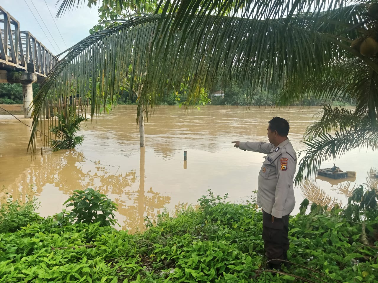 Polres Kuansing melalui Polsek Kuantan Tengah, Polsek Pangean dan Polsek Hulu Kuantan Pantau Perkembangan Debit Air Sungai di Wilayah Kuansing