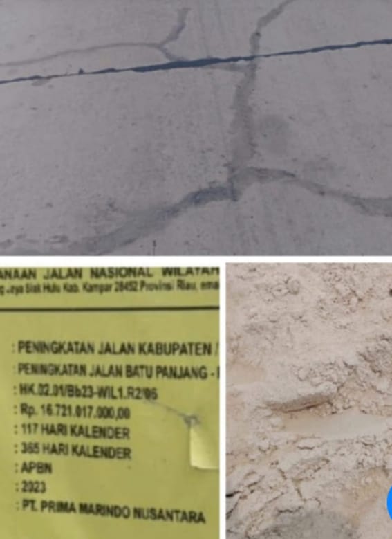Proyek jalan tersebut menelan Anggaran Milyaran Rupiah,sayangnya baru selesai dikerjakan sudah terlihat retak-retak pada permukaan beton rigit,adapun perusahaan yang mengerjakan proyek tersebut adalah