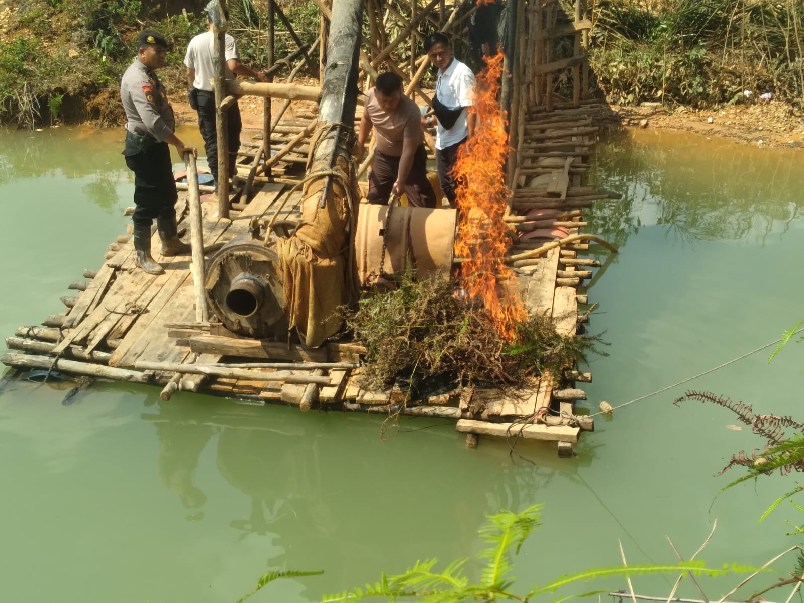 "Kemudian terhadap 3 ( Tiga ) unit rakit yang ditemukan tersebut langsung dilakukan tindakan dengan cara melakukan penindakan pemusnahan dan merusak rakit PETI tersebut dengan cara dibakar sehingga tidak bisa dipergunakan lagi," ungkap AKP Sutarja.
