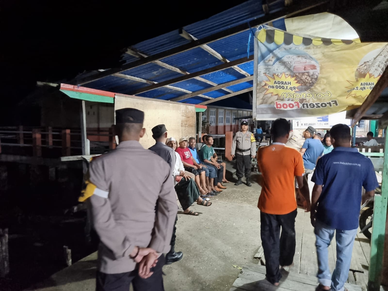 Inhil-Meskipun Malam Hari personil polsek Concong tetap lakukan sosialisasi dan ajak masyarakat untuk partisipasi aktif pada Pemilu damai 2024
