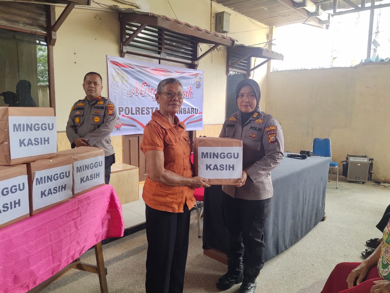 Kegiatan Minggu Kasih Poresta Pekanbaru bertujuan untuk bersilaturrahmi, menciptakan kekeluargaan dan kebersamaan sehingga terciptanya Harkamtibmas.