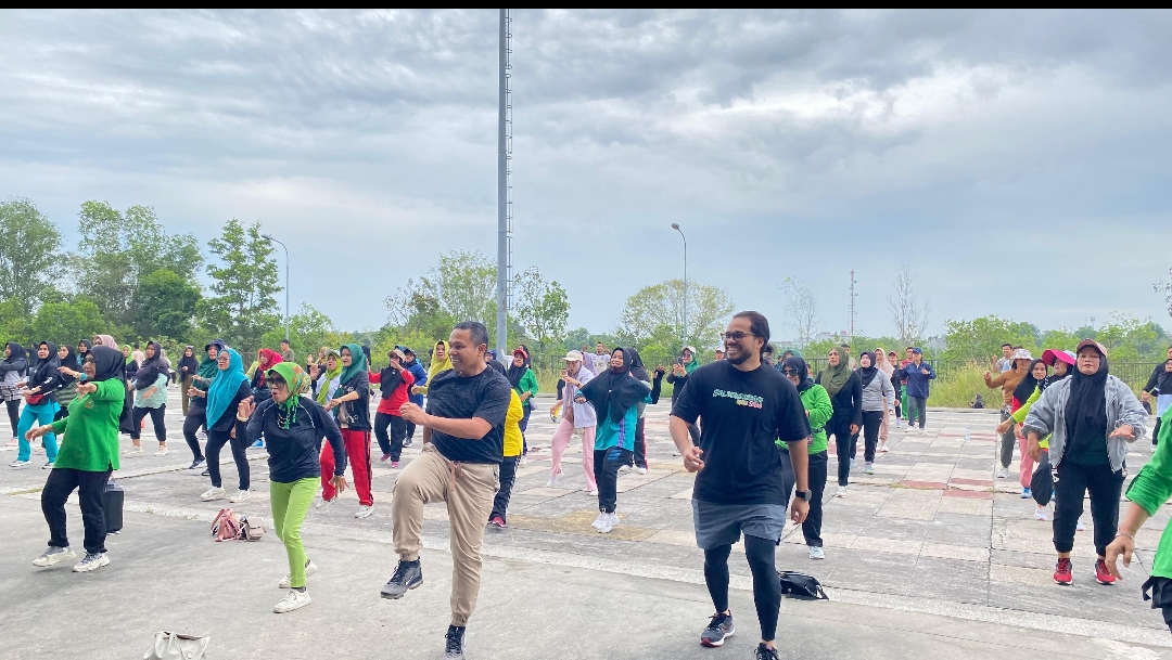 Pekanbaru - Ratusan Masyarakat Kota Pekanbaru yang terdiri dari ibu-ibu, kaum milenial, mahasiswa, aktivis muda, dan gen Z menggelar senam massal yang di taja oleh Alih Generasi Riau di Stadion Utama Panam, 26/5 pagi.