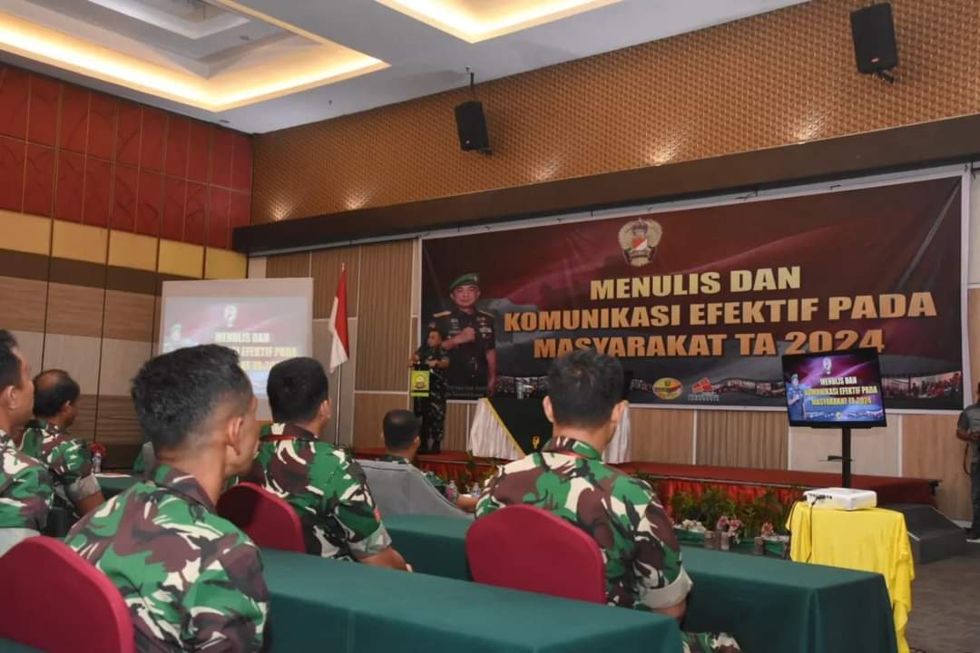 Pekanbaru - Staf Teritorial Angkatan Darat (Sterad) diwakili oleh Kolonel Inf Tri Aji Sartono M.Han menutup pelatihan Menulis dan Komunikasi Efektif pada masyarakat TA.2024 untuk satuan jajaran Kodam IBB terpusat yang dilaksanakan di Gedung Ballroom Grand Suka hotel yang berlokasi di Jl. Soekarno Hatta Kota Pekanbaru Provinsi Riau.
