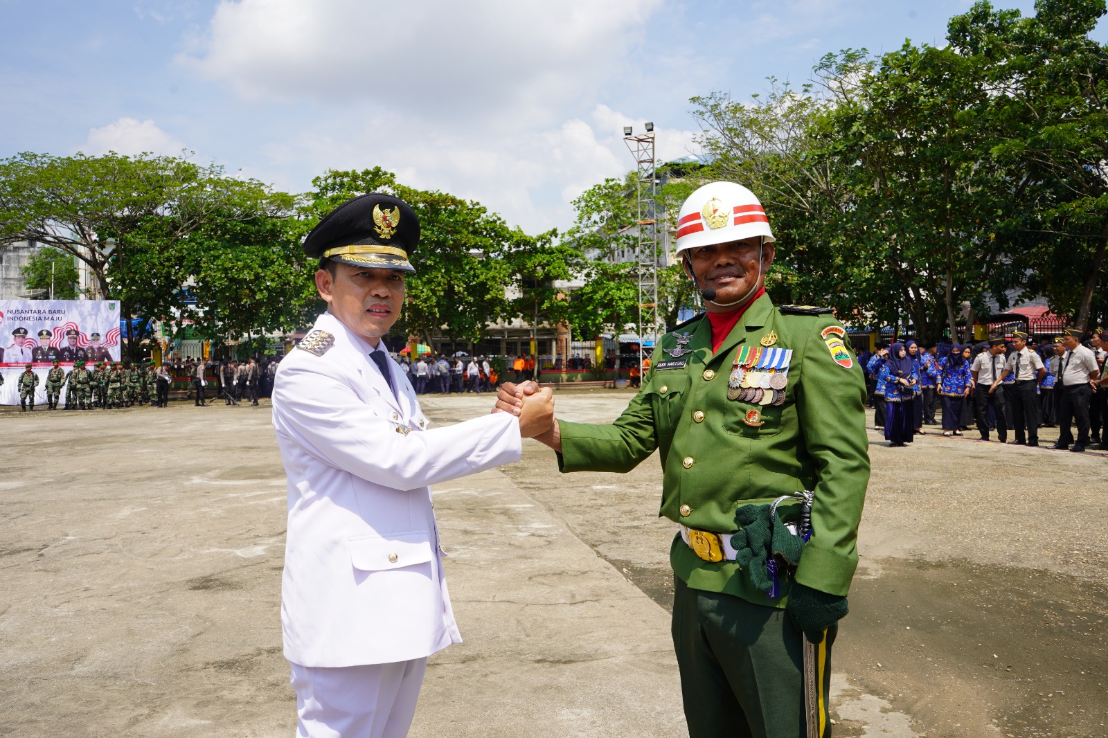 Tembilahan, 17 Agustus 2024 - Pemerintah Kabupaten Indragiri Hilir (Inhil) menggelar upacara peringatan Hari Ulang Tahun (HUT) ke-79 Kemerdekaan Republik Indonesia dengan khidmat di Lapangan Gajah Mada, Tembilahan. Upacara ini dipimpin langsung oleh Penjabat (Pj) Bupati Inhil, Erisman Yahya, selaku Inspektur Upacara, didampingi Komandan Upacara kapten inf Rudi Hartono.