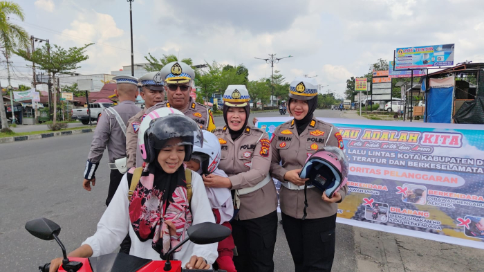TIM COOLING SYSTEM DITLANTAS POLDA RIAU EDUKASI PENGENDARA DI TRAFFIC LIGHT YOS SUDARSO