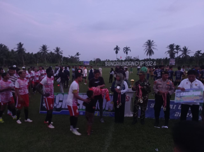 Penutupan Turnamen Sepak Bola Sungai Undan CUP 2024 berlangsung meriah dan aman di Lapangan H. Sahdan, Desa Sungai Undan, Kecamatan Reteh, pada Senin (4/11) sore. Gelaran yang telah berlangsung selama beberapa pekan ini ditutup dengan final seru antara tim-tim terbaik dari wilayah Reteh dan sekitarnya. Pengamanan acara ini disinergikan oleh Polsek Reteh, Koramil 07/Reteh, dan Satpol PP Kecamatan Reteh, yang bersama-sama menjaga ketertiban hingga kegiatan selesai pukul 18.00 WIB.