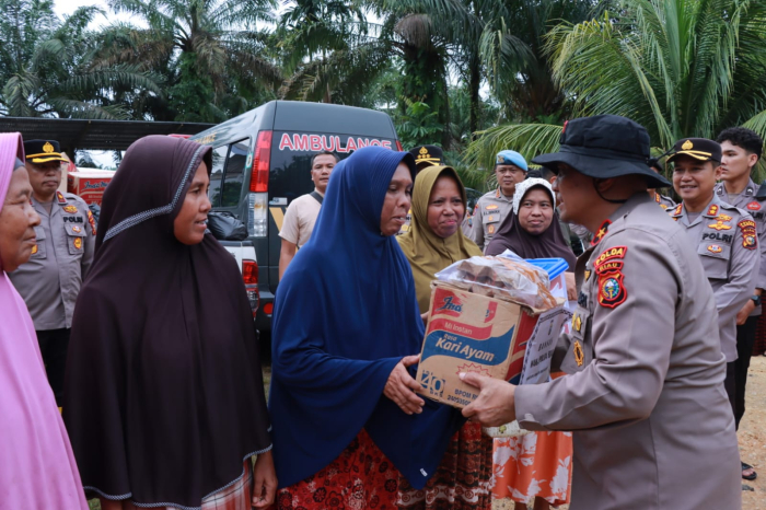 Wakapolda Riau kemudian meninjau langsung lokasi banjir dan rumah-rumah warga yang masih tergenang air. Ia juga menyambangi dan membagikan bantuan sosial berupa 150 paket sembako kepada warga yang terdampak banjir di Desa Sahilan Darussalam, Gunung Sahilan, dan Desa Subarak.