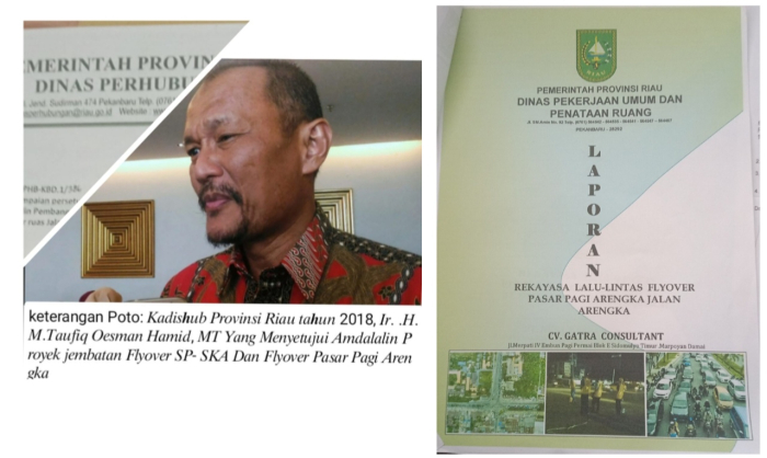 Informasi yang diperoleh Pewarta Andalalin tandingan dari CV. Gatra Consultant yang digunakan untuk pembangunan Flyover Simpang Pasar Pagi Arengka di Jalan Soekarno Hatta/HR Soebrantas dan pembangunan Fly Over Simpang SKA di setuju juga oleh Kadishub provinsi Riau, sedangkan yang punya kontrak Awal Andalalin tersebut adalah PT. Nusa Karya Dupama yang digunakan untuk Pekerjaan kedua flyover tersebut.