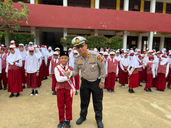 TEMBILAHAN - Kepala Satuan Polisi Lalu Lintas Polres Indragiri Hilir, Riau, AKP Fandri,S.H berkesempatan menjadi inspektur upacara di lingkungan Sekolah Dasar Negeri (SDN) 032 Tembilahan, Senin, 24 Februari 2025.