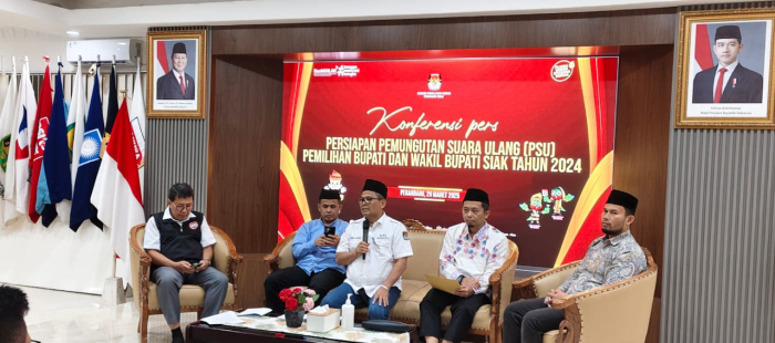 Pekanbaru - Komisi Pemilihan Umum (KPU) Kabupaten Siak akan melaksanakan Pemungutan Suara Ulang (PSU) sesuai Putusan Mahkamah Konstitusi Nomor 73/PHPU.BUP.XXIII/2025 tanggal 24 Februari 2025. PSU akan digelar pada Sabtu, 22 Maret 2025, di TPS 3 Desa Jayapura (Kecamatan Bungaraya), TPS 3 Desa Buantan Besar (Kecamatan Siak), serta di TPS Lokasi Khusus RSUD Tengku Rafi’an bagi pasien, pendamping pasien, dan tenaga medis yang belum menggunakan hak pilihnya pada 27 November 2024.