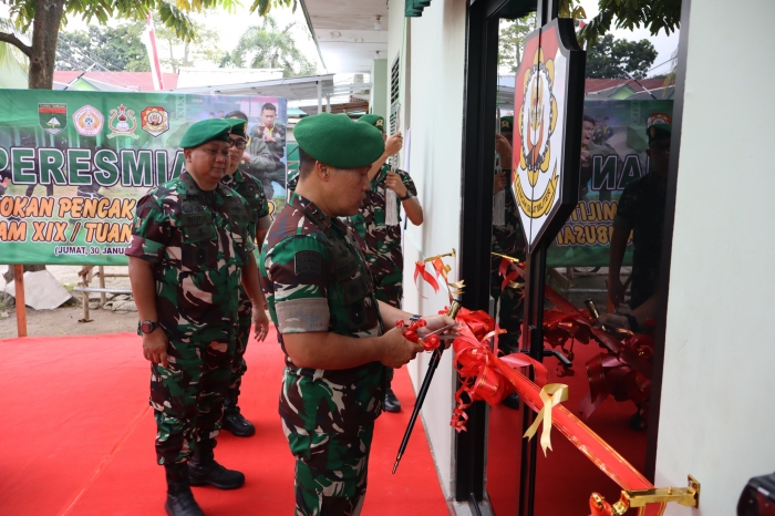 Pekanbaru — Panglima Kodam XIX/Tuanku Tambusai, Mayjen TNI Dr. Agus Hadi Waluyo, S.A.P., M.M., CHRMP, meresmikan Padepokan Pencak Silat Militer sekaligus menutup Latihan Kader Terampil (Latkadertih) Pencak Silat Militer yang dilaksanakan secara tersebar di jajaran Kodam XIX/Tuanku Tambusai Tahun Anggaran 2025/2026, bertempat di Lapangan Pancasila, Jalan Dr. Sutomo, Kelurahan Suka Mulya, Kecamatan Sail, Kota Pekanbaru, Jumat (30/1/2026) sore.